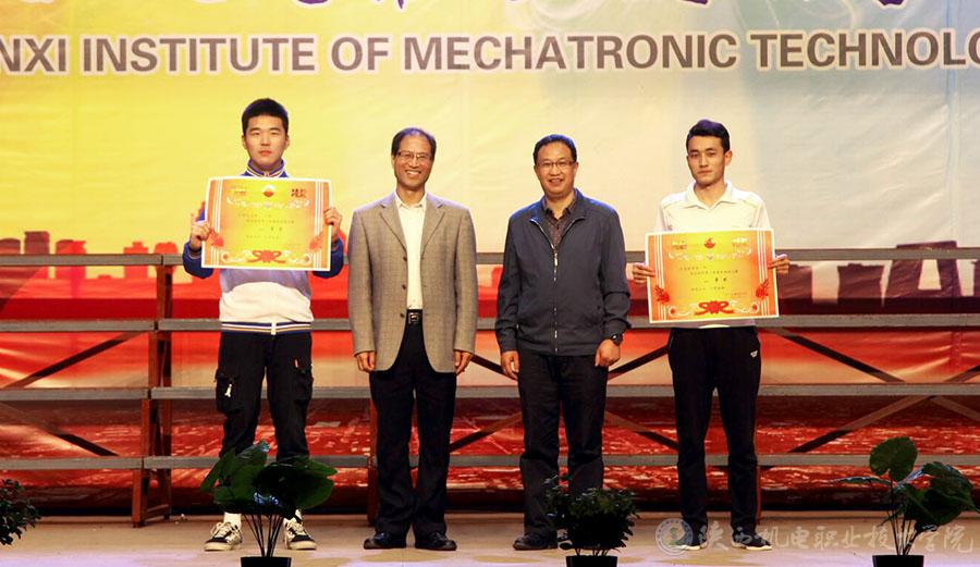 党委书记伊逊智与党委副书记、院长向纪明为获奖班级颁奖