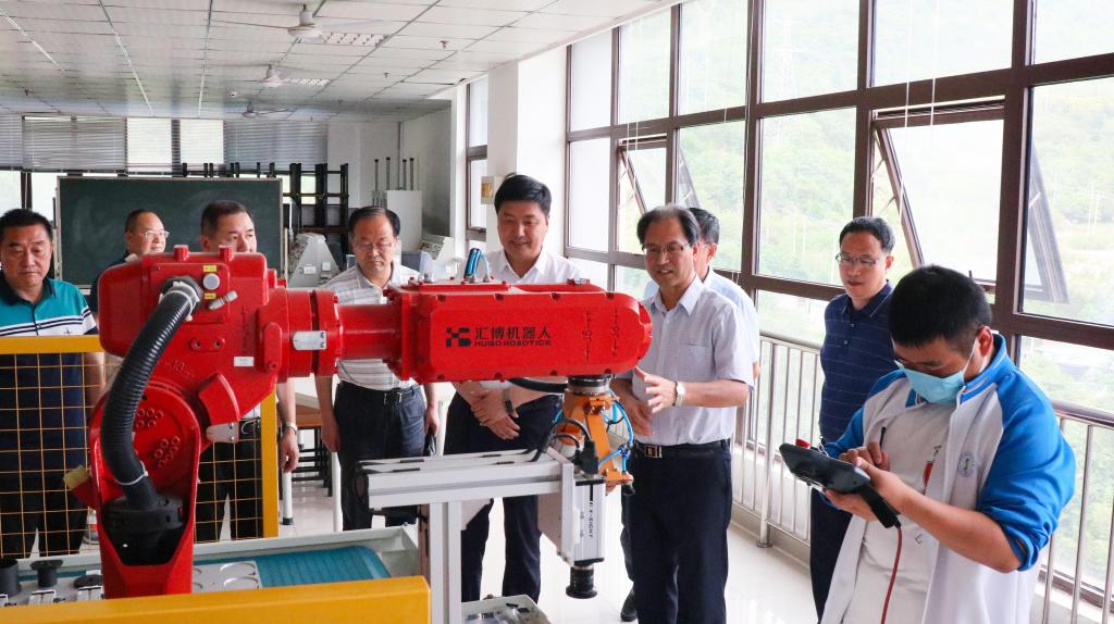 调研组一行参观陕西机电职业技术学院工业机器人技术实训室(摄影|张婷)