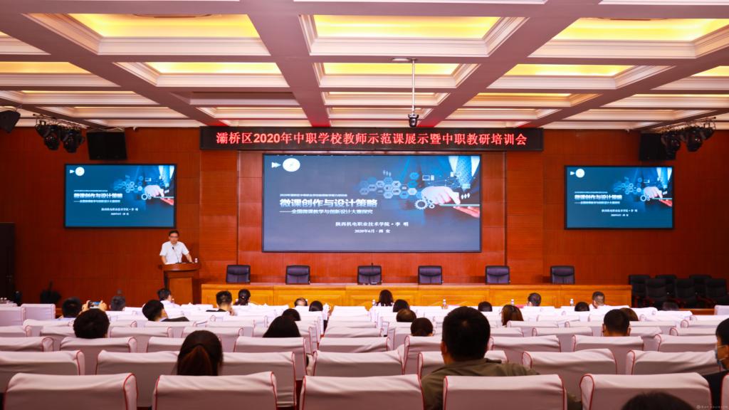 2020年6月16日,西安市灞桥区“2020年中职学校教师示范课展示暨中职教师培训研讨会”在西安铁路职业学校隆重召开。陕西机电职业技术学院作为高职院校中的优秀代表,受灞桥区教育局邀请,学院委派,我院基础部英语教研室主任、名师工作室主持人李明副教授参加了此次研讨会,为大会作题为《微课创作与设计策略》的专题报告。会议由西安市灞桥区教育局主办、灞桥区教师进修学校承办、西安铁路职业学校协办,来自全区近70名教师参加了会议。
