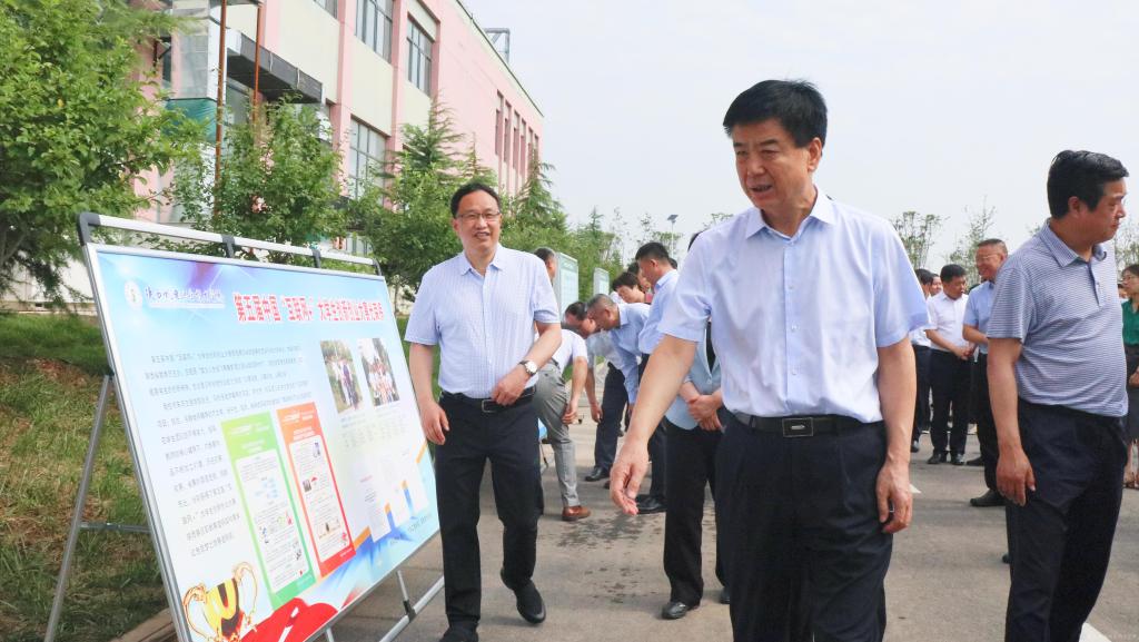 6月19日,宝鸡市项目建设现场观摩会召开。惠进才、马秉寅、吴铁、李瑛等市领导以及各县区、各部门负责同志走进金台区、千阳县、陇县,现场观摩重点项目建设,并对三个县区的项目建设情况进行点评打分。作为蟠龙高新区建设项目的主要介绍单位我院党委书记伊逊智、院长向纪明、纪委书记齐晓军及院长助理赵争东等一行前往陕西机电职业技术学院蟠龙高新区新校区,就我院新校区建设情况进行介绍并展开实地调研。