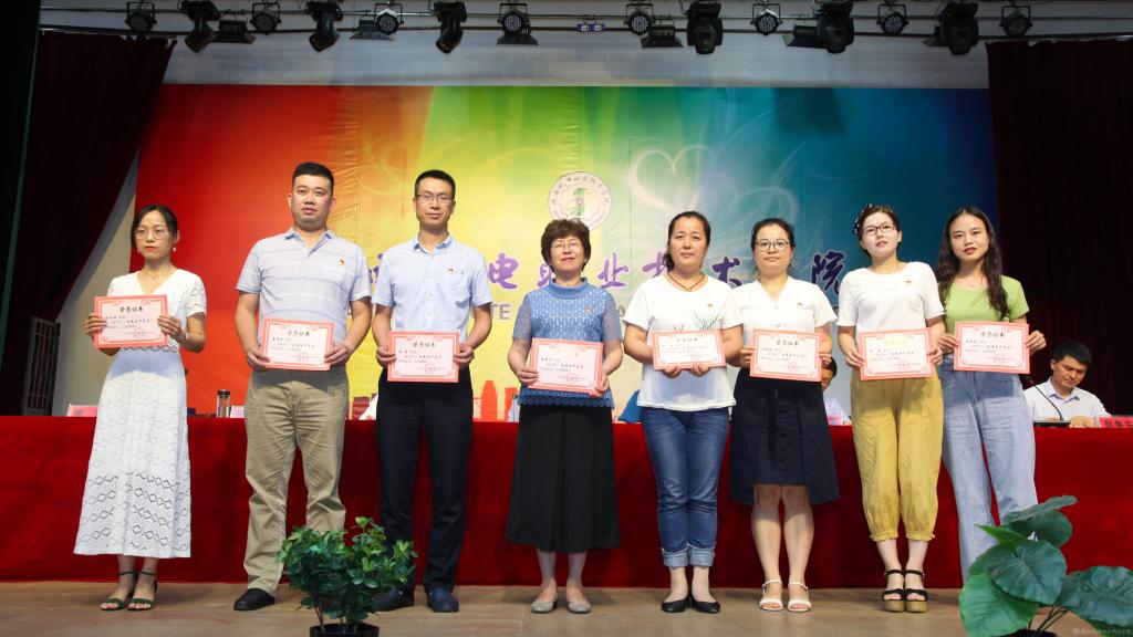 邓新治宣读《中共陕西机电职业技术学院委员会关于庆祝建党99周年暨表彰先进党支部、优秀共产党员、优秀党务工作者的决定》并颁奖,授予行政党支部等5个单位“先进党支部”,授予徐圣月等18名同志“优秀共产党员”称号,授予邢平等3名同志“优秀党务工作者”荣誉称号。