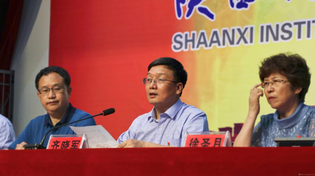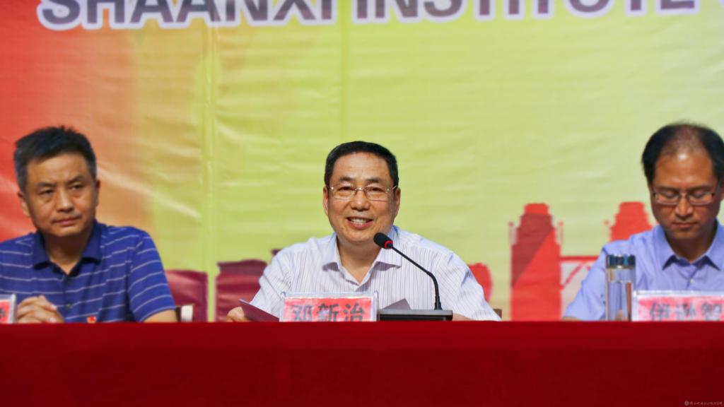 邓新治宣读《中共陕西机电职业技术学院委员会关于庆祝建党99周年暨表彰先进党支部、优秀共产党员、优秀党务工作者的决定》
