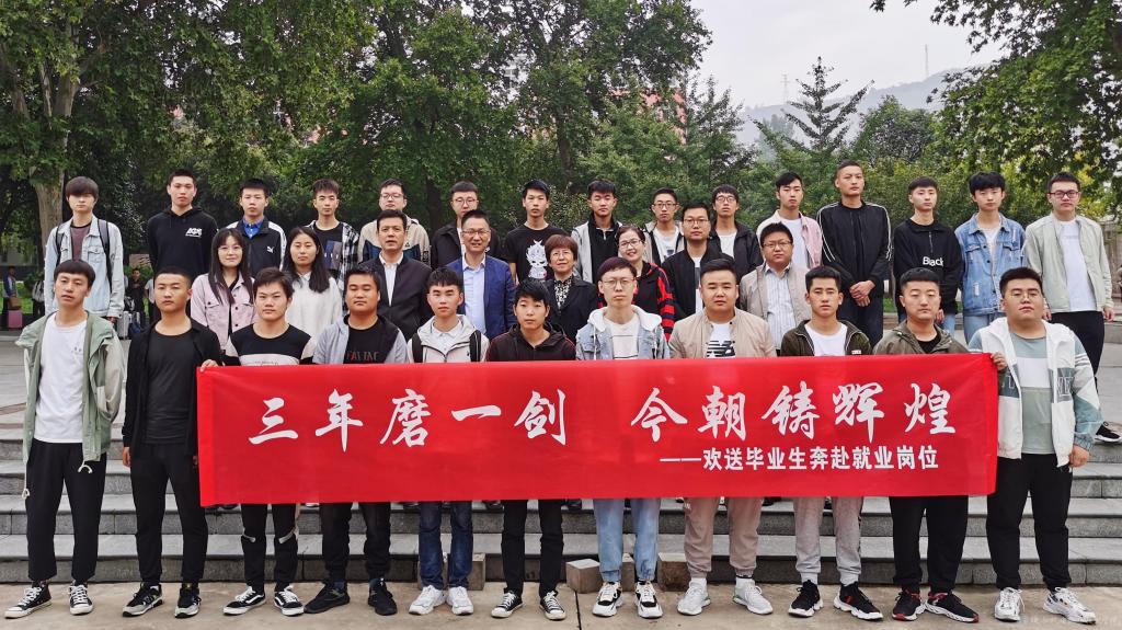 2020年9月29日,我校2021届27名毕业生离校奔赴中铁一局集团电务公司报到。副院长徐圣月、招生就业处处长朱云洁、铁道工程学院副院长贾九荣、招生就业处副处长田正本及2021届相关辅导员老师在校门口欢送毕业生并合影留念。