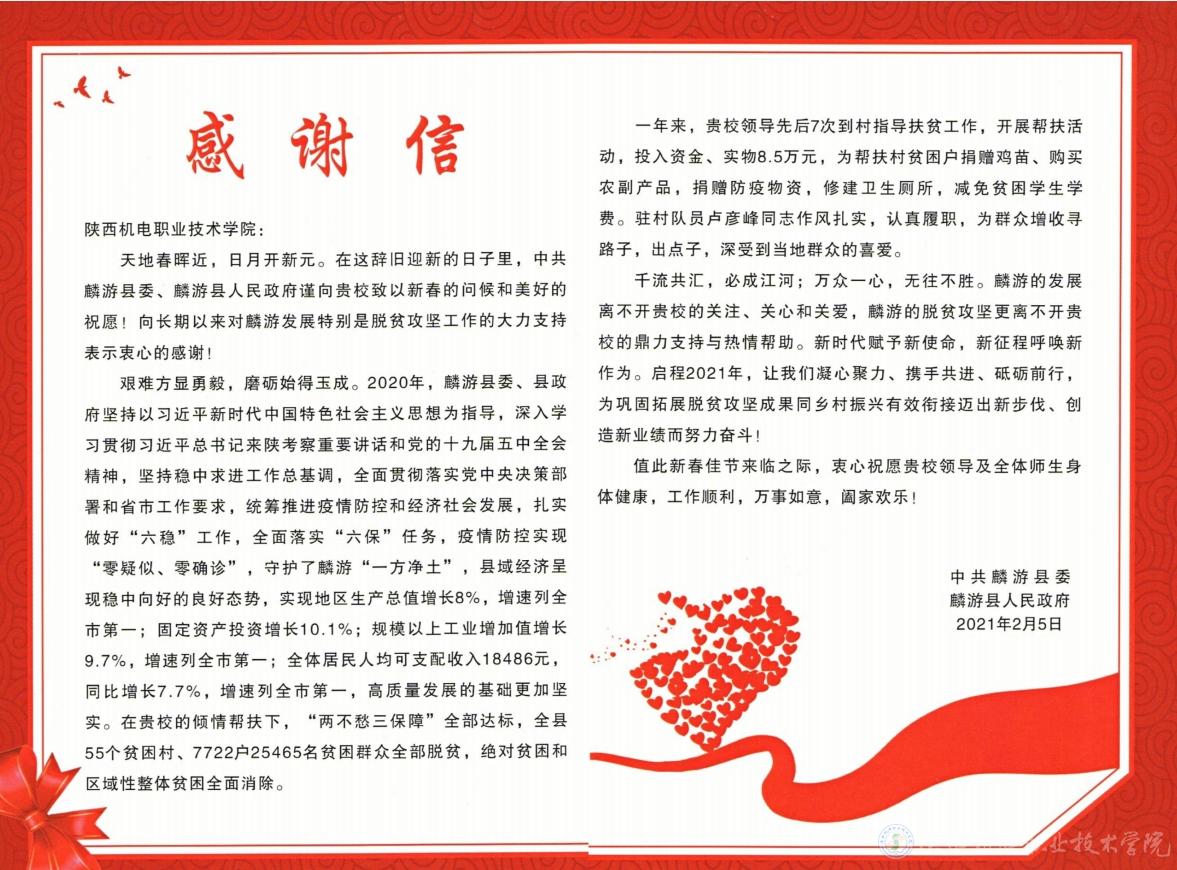 2021年我校将一如既往的按照中省市精准扶贫文件精神,积极配合澄铭窑村党支部、村委会,充分发挥高校资源优势,“扶上马,送一程”将巩固拓展成果同实现乡村振兴衔接摆在首要的位置,继续压实压紧责任,确保工作不留空档,政策不留空白。圆满完成各项扶贫工作任务,为乡村振兴而努力!