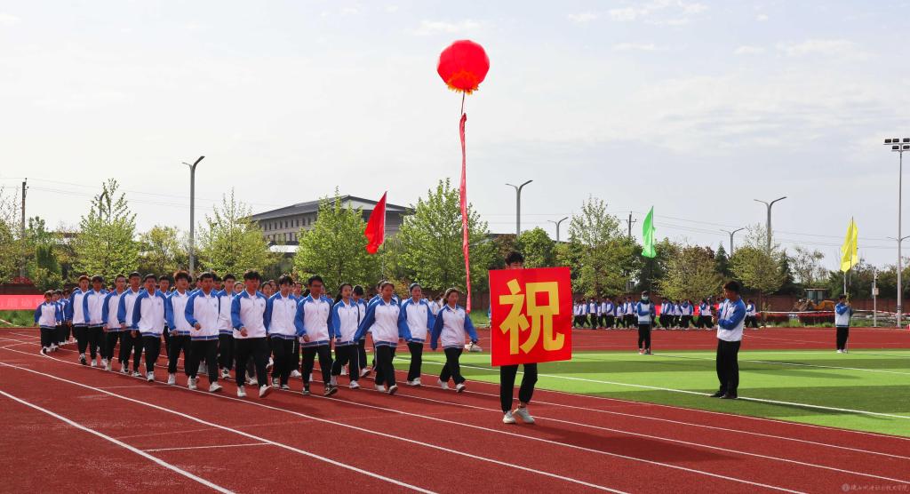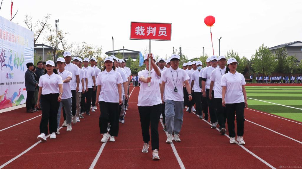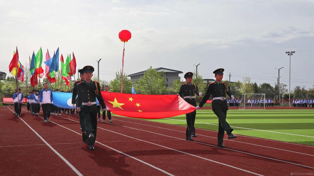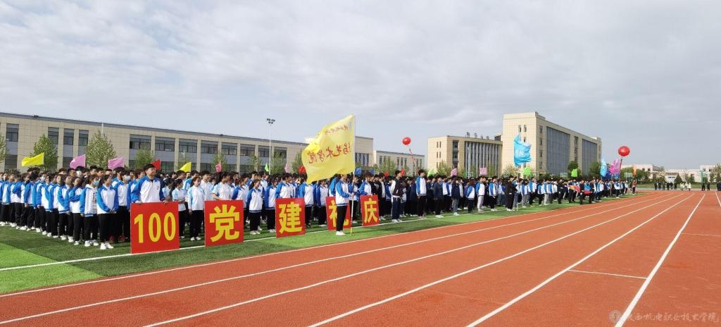 当前,陕西机电职业技术学院全校上下正在深入开展党史学习教育,使今年的春季运动会开幕式呈现出鲜明的党史学习教育成果,展现出昂扬奋进的精神风貌。学院一直以来大力开展阳光体育活动,隆重举办运动会,目的是引导广大同学“走下网络、走出宿舍、走向操场”,坚持“健康向上、不懈奋斗”的体育精神,使坚持体育锻炼成为青年大学生的生活方式和健康时尚。希望全体运动员赛出水平,赛出风格!以优异成绩迎接中国共产党成立100周年。