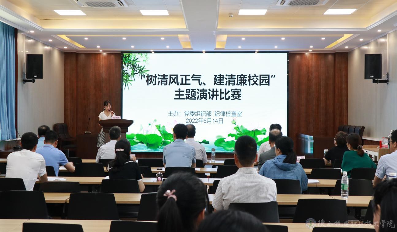 为深入推进廉洁文化宣传教育月活动,进一步在全校范围内营造说廉、倡廉、崇廉的文化氛围,2022年6月14日下午,党委组织部、纪律检查室在蟠龙校区博学楼视频会议室举办了“树清风正气、建清廉校园”主题演讲比赛。党委书记伊逊智,党委副书记、纪委书记齐晓军,党委委员、副院长张新堂,党委委员、副院长张克,校级督导徐圣月,党委委员、院长助理赵争东莅临大赛现场。各党支部书记担任此次比赛的评委,来自各支部推荐的17名党员代表参加比赛。比赛由党委组织部综合科科长张玉琼主持。