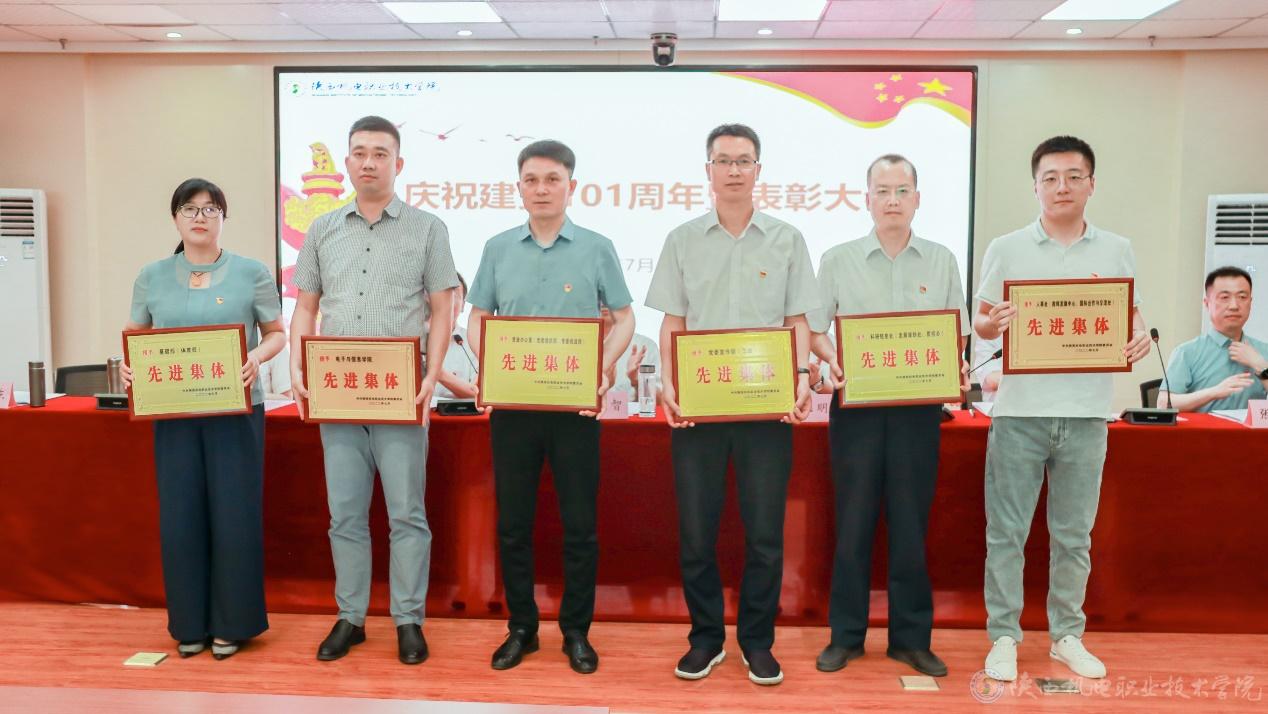 副院长张新堂宣读《关于庆祝建党101周年暨表彰“先进党支部”“优秀共产党员”“优秀党务工作者”的决定》并向3个先进党支部、32位优秀共产党员、以及14位优秀党务工作者颁奖。