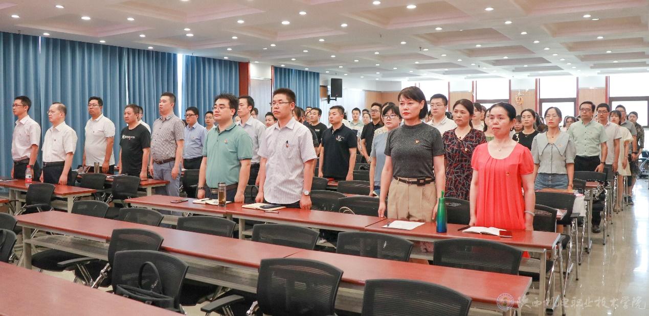 7月1日下午,陕西机电职业技术学院举行庆祝中国共产党成立101周年暨“七一”表彰大会。党委书记伊逊智,院长向纪明,纪委书记齐晓军,副院长张新堂、张琴、张克,院长助理赵争东,学校全体党员及受表彰的先进集体和先进个人参加会议。会议由齐晓军主持。