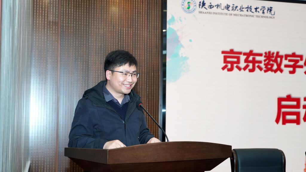 宝鸡市数字经济局副局长任海成在致辞中表示京东集团深入结合区域经济特色,与陕西机电职业技术学院在助力本地经济,人才培养层面作出了显著成果,今后将继续加深政校企合作。