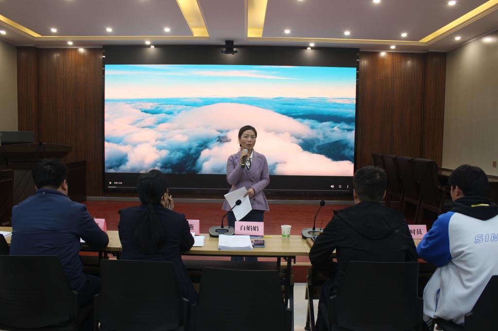 比赛结束,教务处处长白娟娟对大赛作总结点评。她首先对参加路演答辩的团队致以衷心祝贺,表示此次大赛把全校学术科技创新的大学生菁英汇聚在一起,碰撞智慧、交流成果、比拼才能,充分展现了陕机电学子的精神风貌与科技创新的风采;其次她对同学们能准确把握我国新发展阶段的新要求来开展研究表示肯定,希望同学们继续将实践与理论相结合,形成一批有深度、有思考的研究成果。