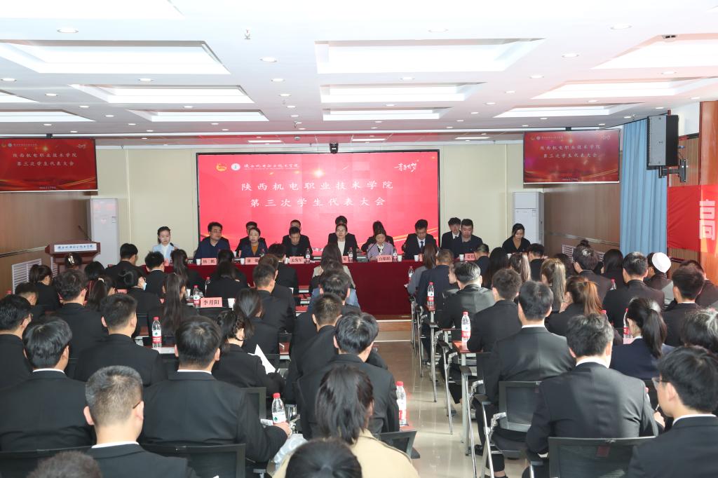 上午9时,大会在庄严激昂的国歌声中开幕。白娟娟宣读校党委、省学联《关于同意召开陕西机电职业技术学院第三次学生代表大会的批复》。宝鸡职业技术学院学生会执行主席曹天胜代表兄弟院校致贺词。他说多年来,宝鸡职业技术学院学生会和陕西机电职业技术学院学生会始终保持着深厚友谊和密切联系,希望今后继续相互砥砺,相互支持,共同发展。省学联在祝贺视频里也指出,学生会工作要聚焦主责主业,做好思想引领;要强化服务意识,积极开展实践,紧扣时代脉搏;要严管组织骨干,深化改革攻坚,为全面建设社会主义现代化国家贡献青春力量。