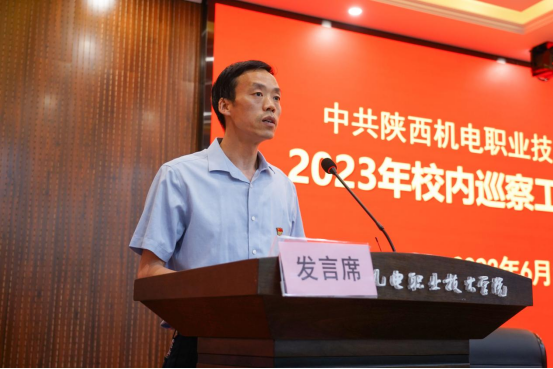 会上,巡察工作领导小组成员、院长助理、组织部部长赵争东宣读了《关于巡察组组长授权任职和任务分工的通知》和《中共陕西机电职业技术学院委员会2023年校内巡察公告》。
