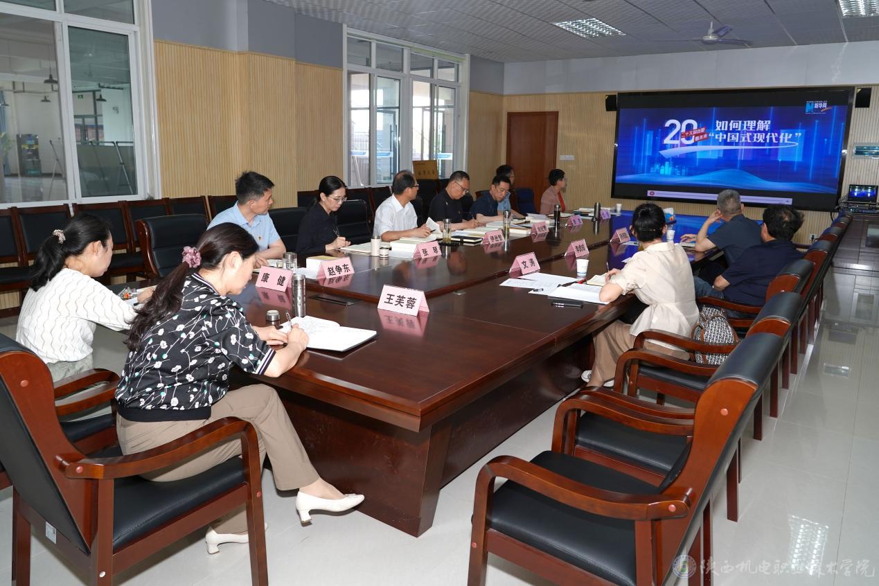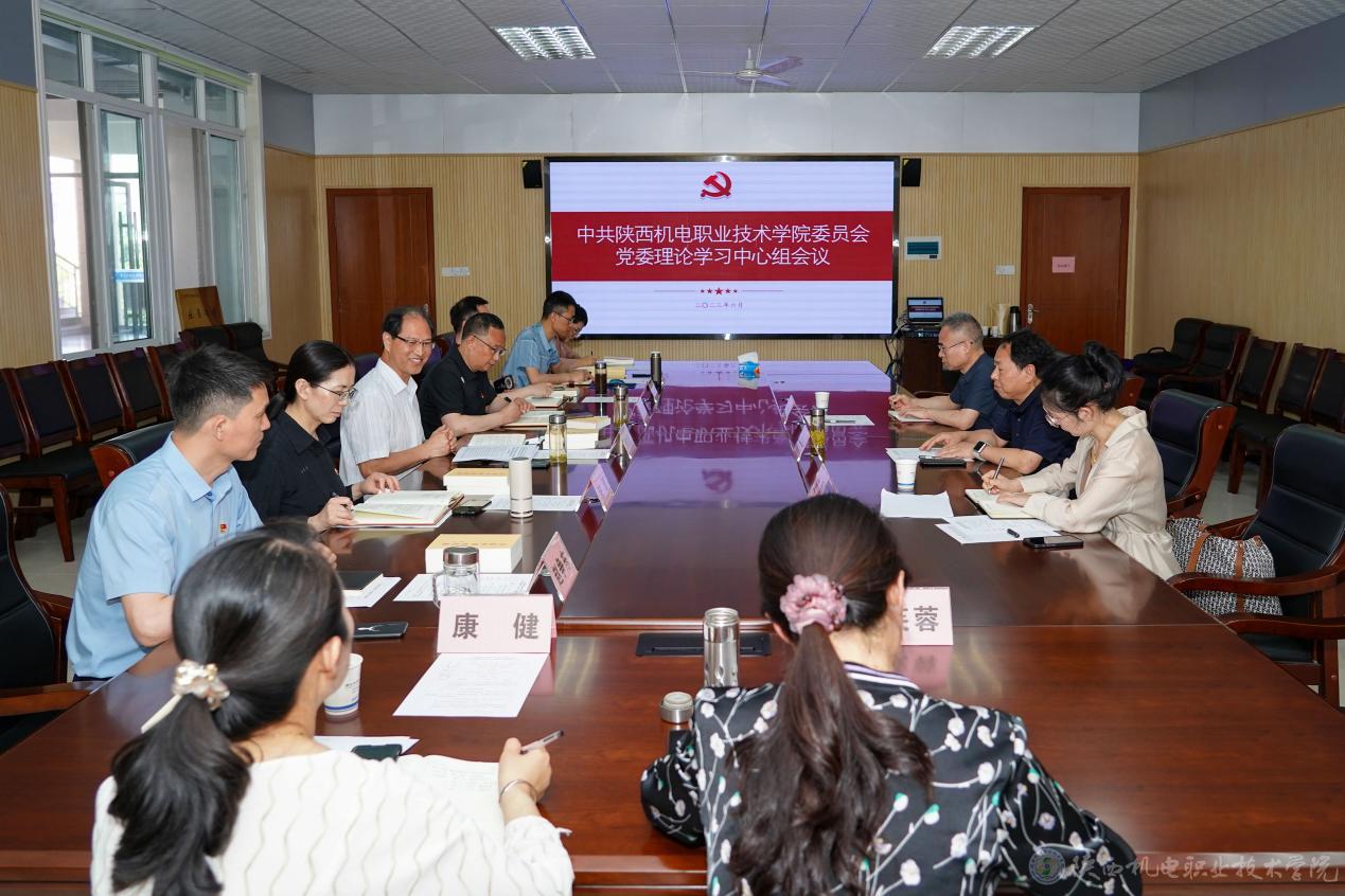 6月14日上午,陕西机电职业技术学院党委在蟠龙校区图书馆会议室组织召开理论学习中心组6月份集中学习会,学校党委书记伊逊智主持会议并领学,理论学习中心组成员及组织部、宣传部、党政办、纪检室负责人等参加了专题学习。主题教育第一巡回指导组组长、西安翻译学院原党委书记李虎成到会指导并作点评讲话,指导组成员文涛、孙沛勋参会督导。