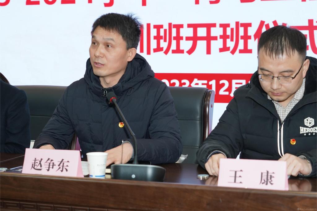 2023年12月29日下午,我校在蟠龙校区博学楼111会议室召开陕西机电职业技术学院团校成立暨2023-2024学年“青马工程”第十三期培训班开班仪式,宝福路校区在汽车机电大楼4楼视频会议室同步进行。党委副书记张琴,党委委员、院长助理赵争东,马克思主义学院负责人王康,各二级学院团总支书记、副书记,第十三期青马班全体成员、学生干部参加开班仪式。仪式由团委书记王枢主持。