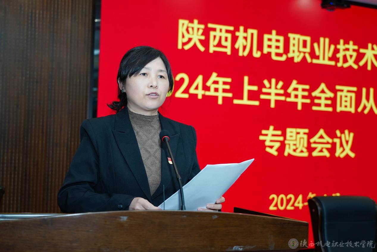 4月11日,陕西机电职业技术学院党委在蟠龙校区博学楼111会议室召开2024年全面从严治党工作会议,党委书记伊逊智出席会议并讲话,党委副书记、纪委书记陈红梅主持会议,校领导、纪委委员、全体中层干部及部门负责人、科级以上干部、各党支部纪检委员参加会议。