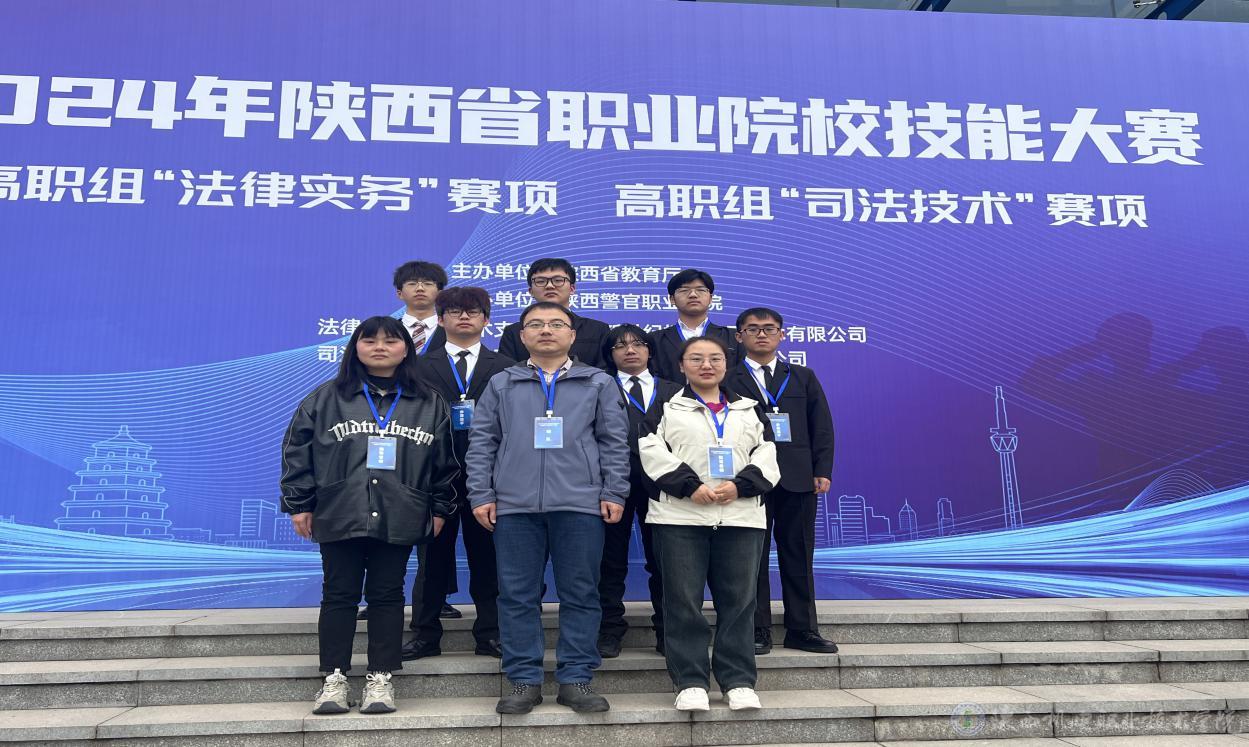 3月26日—27日,2024年陕西省高职院校技能大赛法律实务赛项在陕西警官职业学院举办。陕西机电职业技术学院一队(22机械制造1班杨易达、23电气技术6班张桢、22铁道工程1班冀跃健,指导教师王乐琴、任蒙蒙)和二队(23电气技术4班刘鹏举、王延都、郝伟雄,指导教师王乐琴、任蒙蒙)双双荣获三等奖。