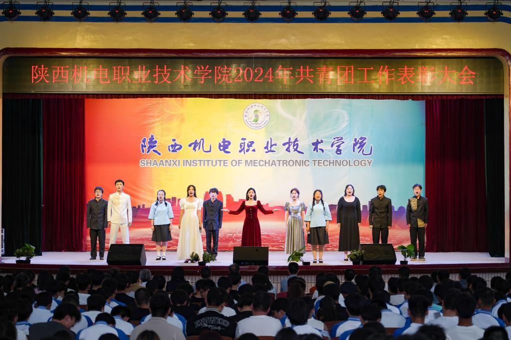 在团歌声中,本次表彰大会圆满落下帷幕。这不仅是一个结束,更是一个新的开始。全体团员青年将以更加饱满的热情和更加坚定的信念,投身在学校和团组织建设的伟大事业中,为实现学校的繁荣发展和团组织的壮大贡献青春力量。近年来,陕西机电职院始终坚持以习近平新时代中国特色社会主义思想为指引,贯彻落实习近平总书记关于青年工作的重要思想和党的二十大精神。今后,校团委在学校党委的坚强领导下继续秉持“服务青年,引领青年,凝聚青年”的宗旨,紧密围绕学校党政中心工作,聚焦共青团主责主业,团结带领全校团员青年成长成才,用青年力量,让青春为中国式现代化挺膺担当!