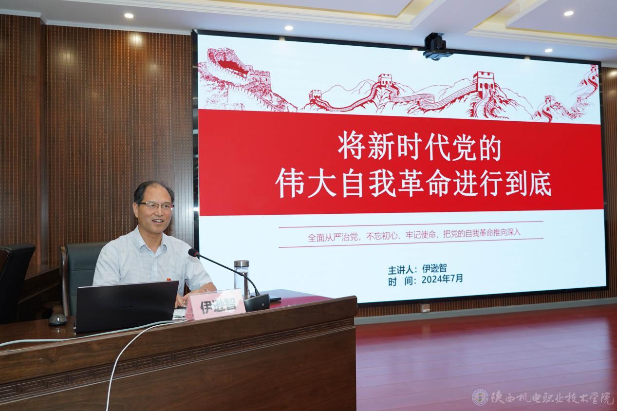伊逊智以《将新时代党的伟大自我革命进行到底》为主题,结合党纪学习教育,围绕新时代我们党为什么要进行自我革命、为什么我们党能够进行自我革命,以及如何将新时代党的自我革命进行到底三个问题,为全体党员上了一堂既生动又深刻的党课。