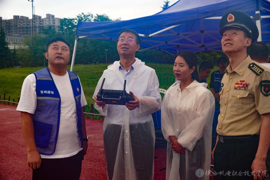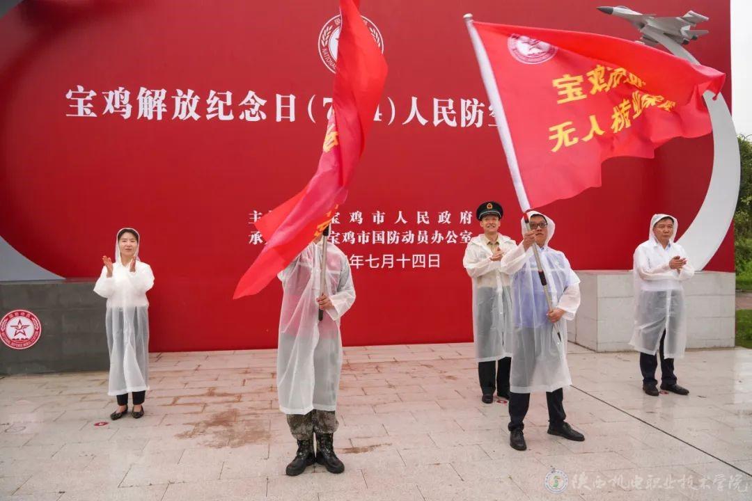 7月14日,宝鸡市人民防空警报试鸣活动在渭滨区渭河生态公园举行,活动为陕西机电职业技术学院无人机产业学院组建的无人机专业保障队进行授旗。市委常委、副市长高宏真出席活动并讲话,我校无人机专业保障队师生代表30余人参加活动。