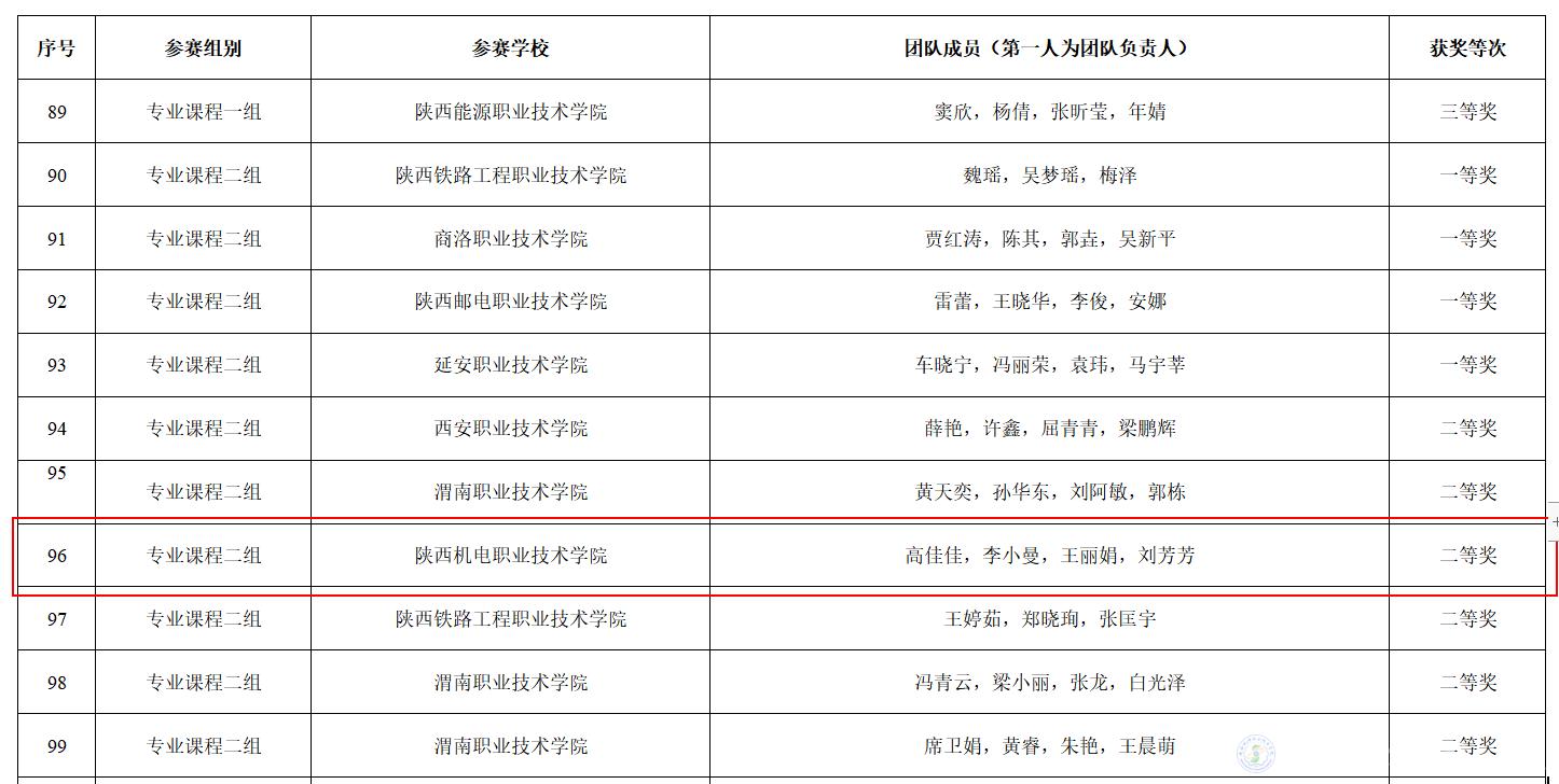 近日,陕西省教育厅公布了2024年陕西省职业院校技能大赛教学能力比赛获奖名单。陕西机电职业技术学院智能制造学院教师团队(高佳佳、李小曼、王丽娟、刘芳芳)凭借精湛、专业的教学技艺和出色的团队协作,在众多参赛队伍中脱颖而出,凭借作品《变速箱轴智能产线系统集成》斩获佳绩,取得了历史性新突破,获得专业课程二组(高职组)二等奖。