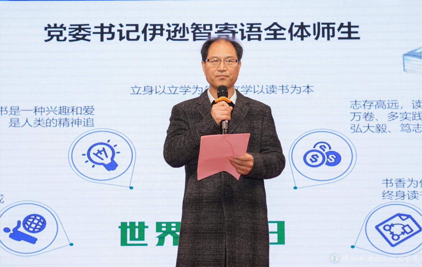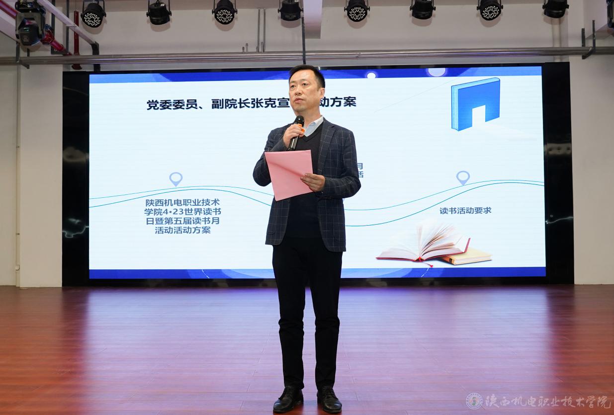 副院长张克宣读《陕西机电职业技术学院4·23世界读书日暨第五届读书月活动方案》